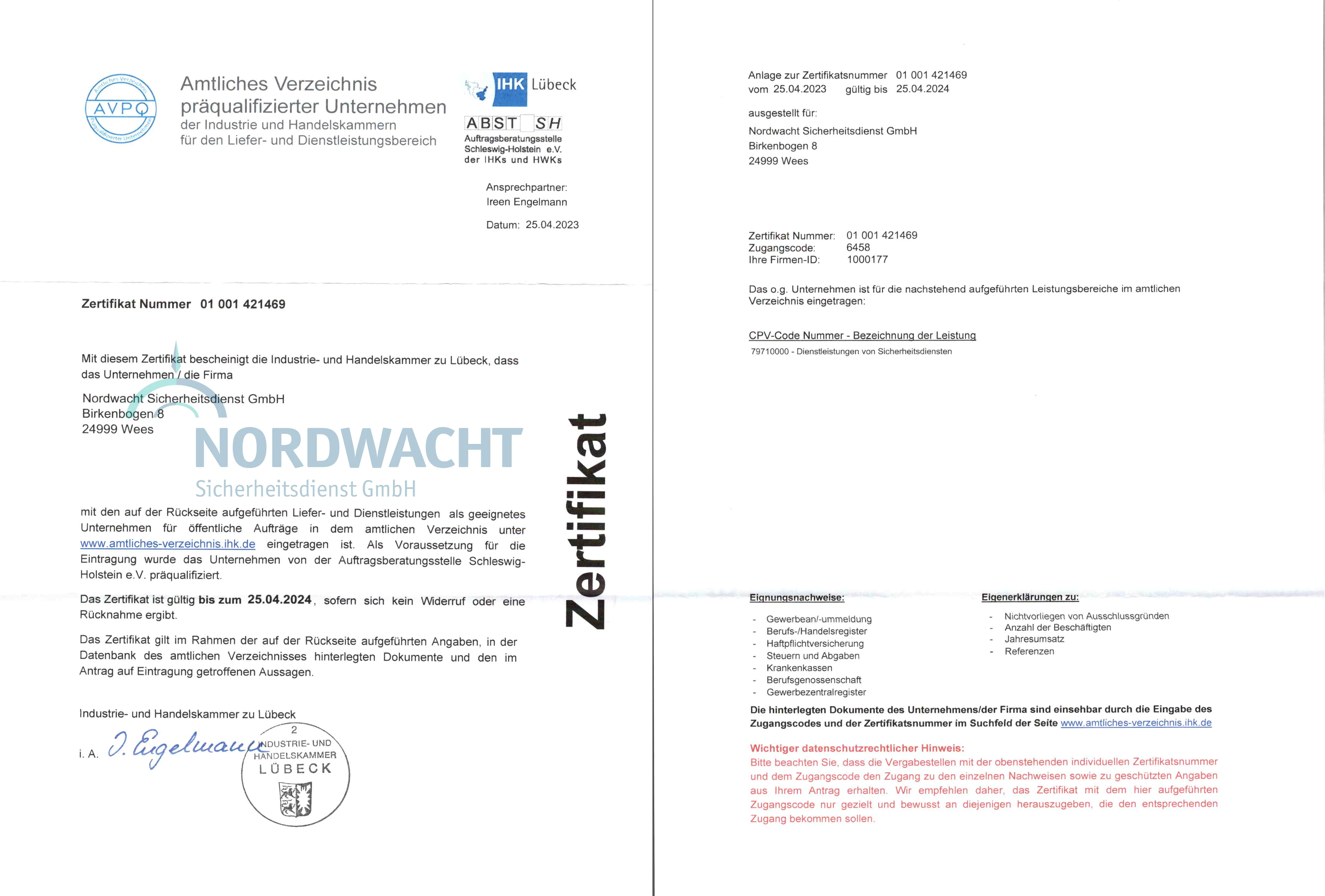 Denn nur so ist gewährleistet, kontinuierlich gute Leistung zu bringen und bestmöglichen Service zu bieten. Für uns gehört vieles zum Segment der Fortbildung dazu. Angefangen beim Austausch mit Kollegen, über eigene Recherche zu Neuheiten und Brancheninformationen bis hin zu regelmäßigen internen und externen Audits. Dadurch können wir die Qualität und Sicherheit unserer Bewachungsleistungen stetig steigern. Davon profitieren wir – und Sie. Ebenfalls dazu gehören Zertifikate und Beglaubigungen, wie auch die urkundliche Bestellung eines Betriebsarztes und einer Fachkraft für Arbeitssicherheit. Alle unsere Zertifizierungen und Urkunden können Sie hier einsehen.